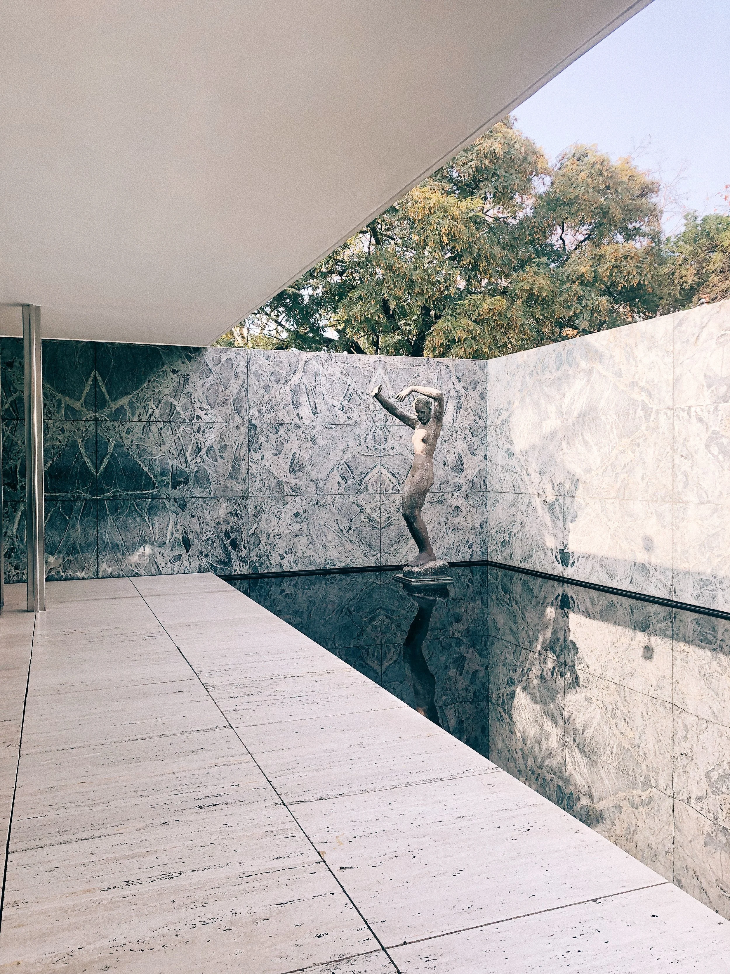 “An ideal zone of tranquility” as conceived by Mies, it manages to blend in and stand out of the surrounding landscape, creating a full isolation from the city noise.